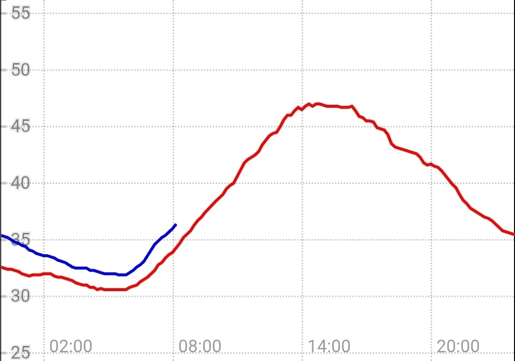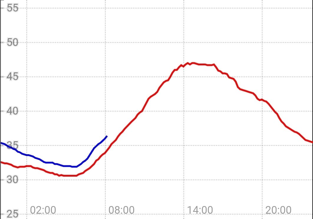 אתמול הטמפ' הזו נמדדה בערך 40 דקות מאוחר יותר.