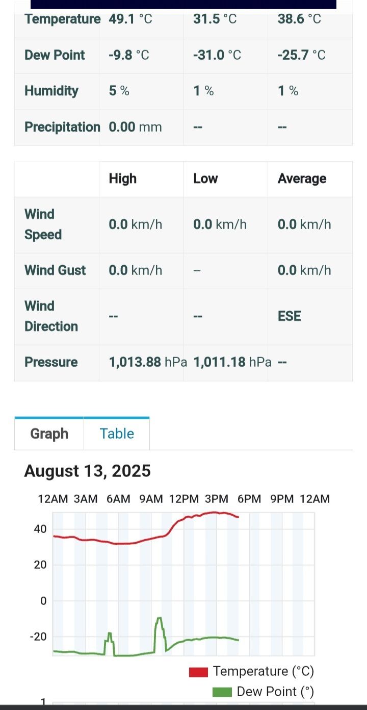 נתונים של צהריי יום פלוס כ-15% לחות(כלומר בצהריי יום ממוצע באוגוסט הטמפ' פה דומה, אך הלחות סביב 60% וכעת אחרי 8 וחצי בערב)