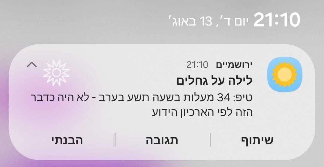 דיווחי מזג אוויר - יום רביעי 13/8/2025 ###3