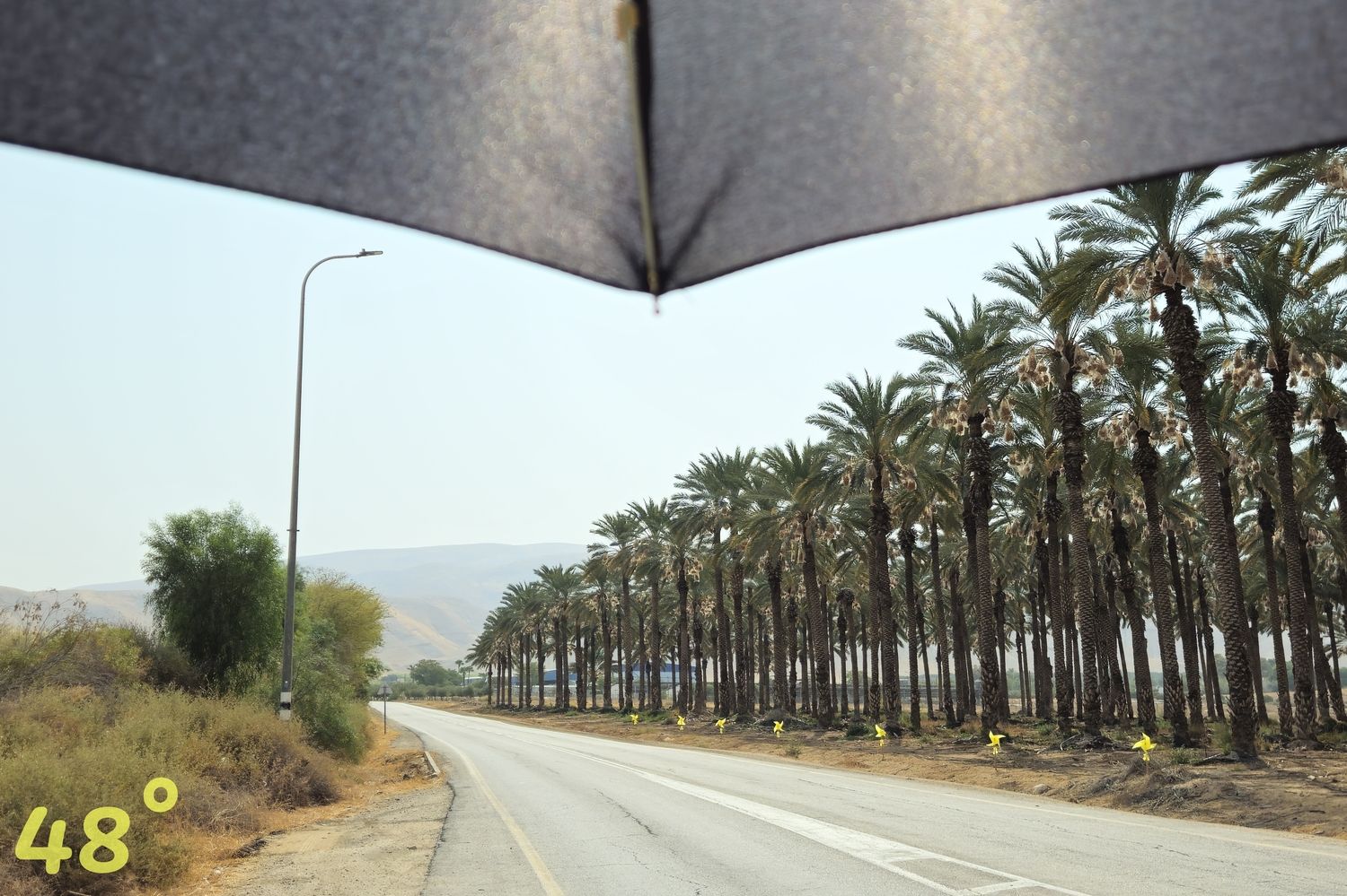 בזמן הירידה מהאוטובוס שהגיע מירושלים, אפשר היה להרגיש כאילו נכנסים לתוך תנור לוהט. זה חום הזוי שמרגישים אותו היטב על כל הגוף, שלא נדבר על השמש השורפת.