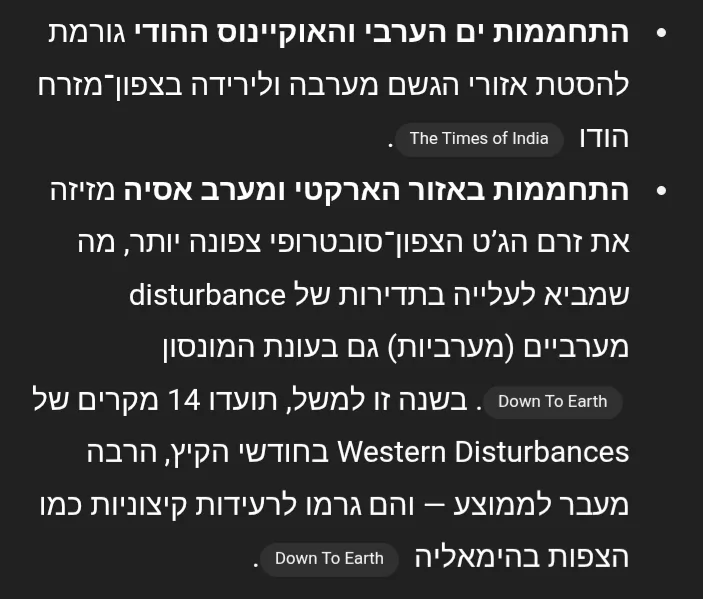 יש ירידה משמעותית בכמויות הגשם בצפון מזרח הודו ועליה משמעותית בצפון מערב הודו. בהינתן שהשנה די ניטרלית מבחינת אל ניניו/ לה ניניה, שאלתי את AI איך הוא מקשר את דפוס הגשם להתחממות הגלובלית, וזו תשובתו: