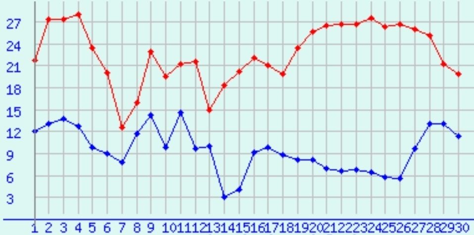 הטמפ' הגבוהה ביותר שנמדדה החודש עמדה על 28.1° והטמפ' הנמוכה ביותר 3.1°.