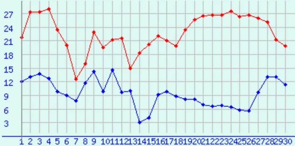- גרף של אוגוסט השנה בעיר הקרה ביותר בעולם יקוצק שבסיביר אבי (חריש)