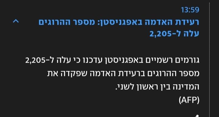 - הרעידה בעוצמה 6 באפגניסטן - 2200 הרוגים חנוך א