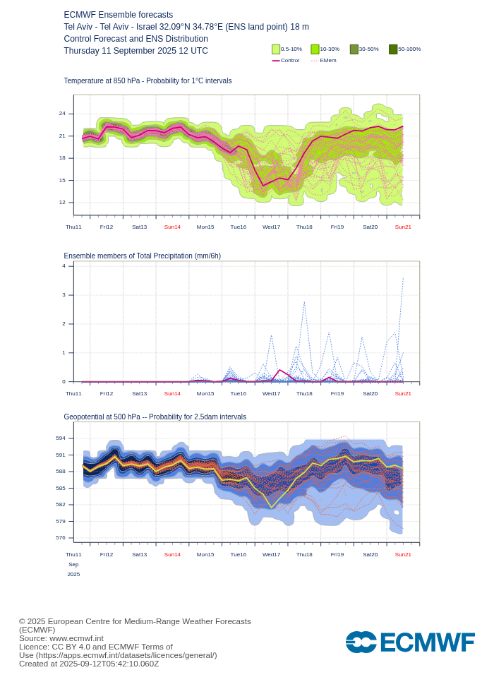 שני המודלים המרכזיים (ECMWF ו-GFS) מצביעים על שינוי חד באמצע השבוע (16-18 בספטמבר) שתתבטא בירידה ניכרת בטמפרטורות בכל הרמות וכניסת אפיק רום לאזורנו.