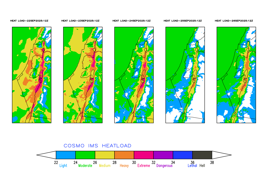צפי טמפרטורות מקסימום נמוכות מאוד, 24° בתל אביב 19° בירושלים, 21° בכרמיאל ואפילו 10° בפסגת החרמון.