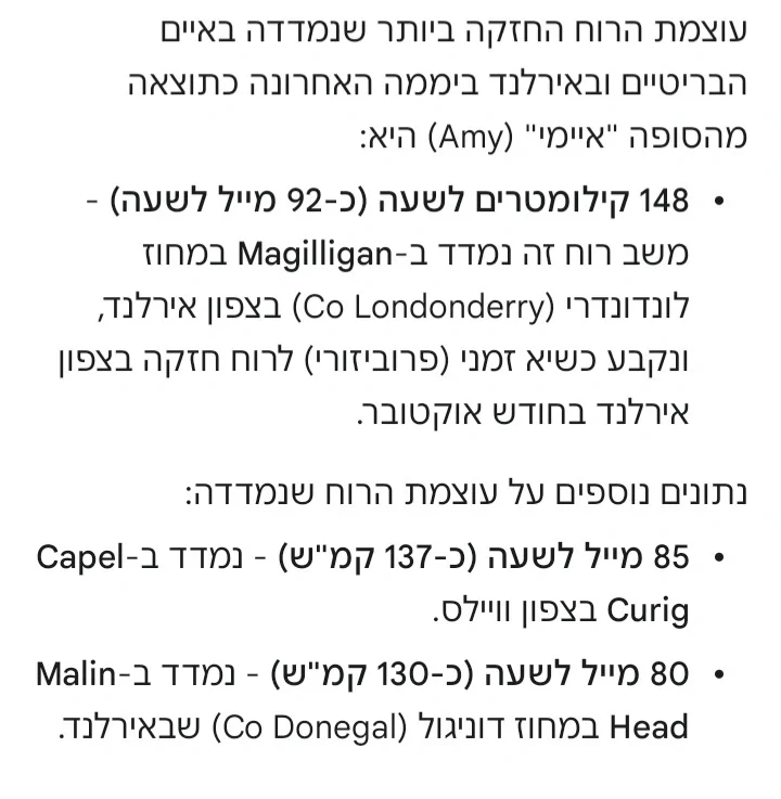 - משבים של 160 קמש באיי שטלנד מצפון לסקוטלנד חנוך א