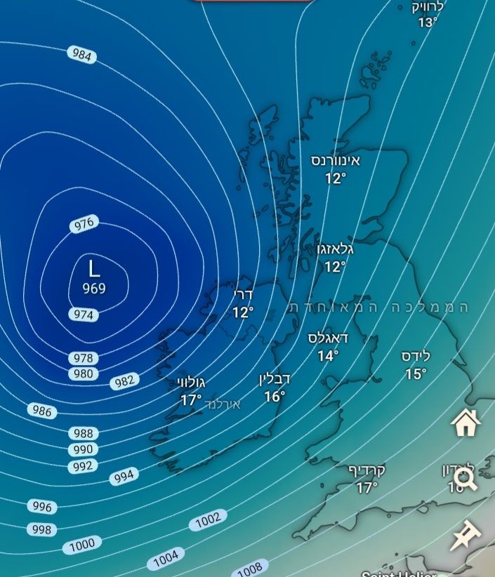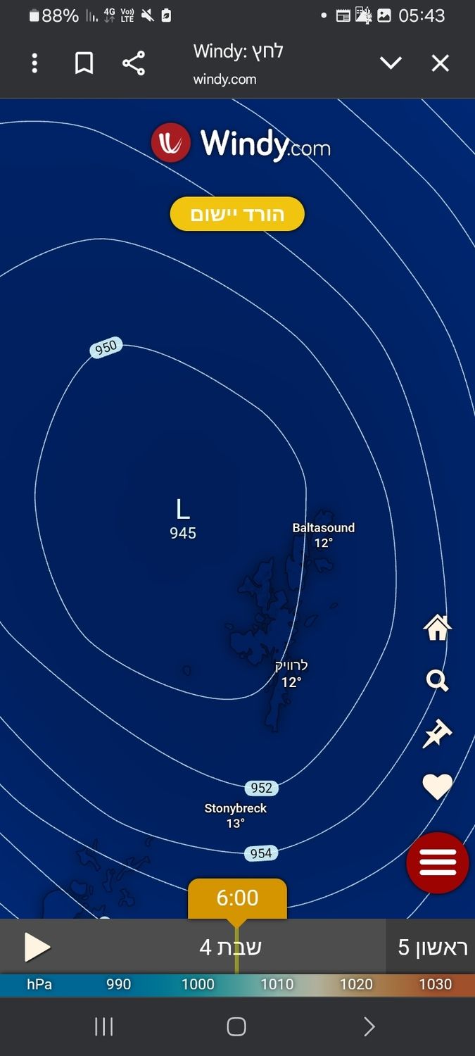 - בצפון איי שטלנד 949 מ"ב, 150 ממ גשם חנוך א