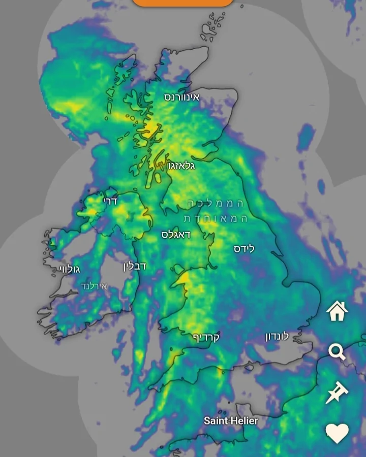 במערב אירלנד משבים מעל 100 קמש וכמויות עד 60 ממ