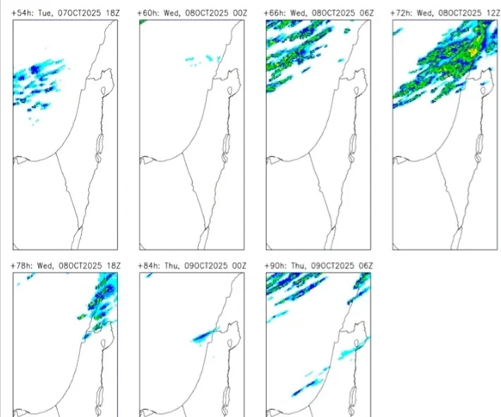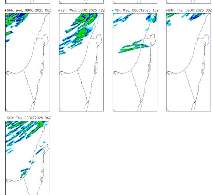 עדיין מוקדם לדעת אם ואיפה בדיוק ואם יגיע לצפון הנגב... (לפעמים צפון הנגב זה בארי צפונה ולפעמים באר שבע צפונה, בדרך כלל בתקופה הזו בארי צפונה ובהמשך החורף המערכות חודרות פנימה)