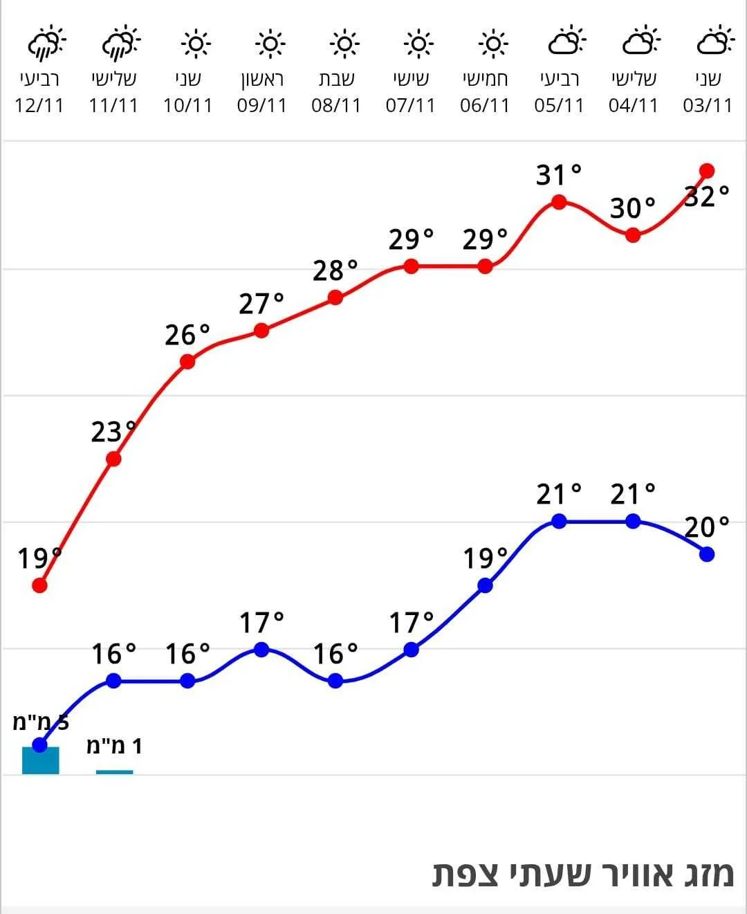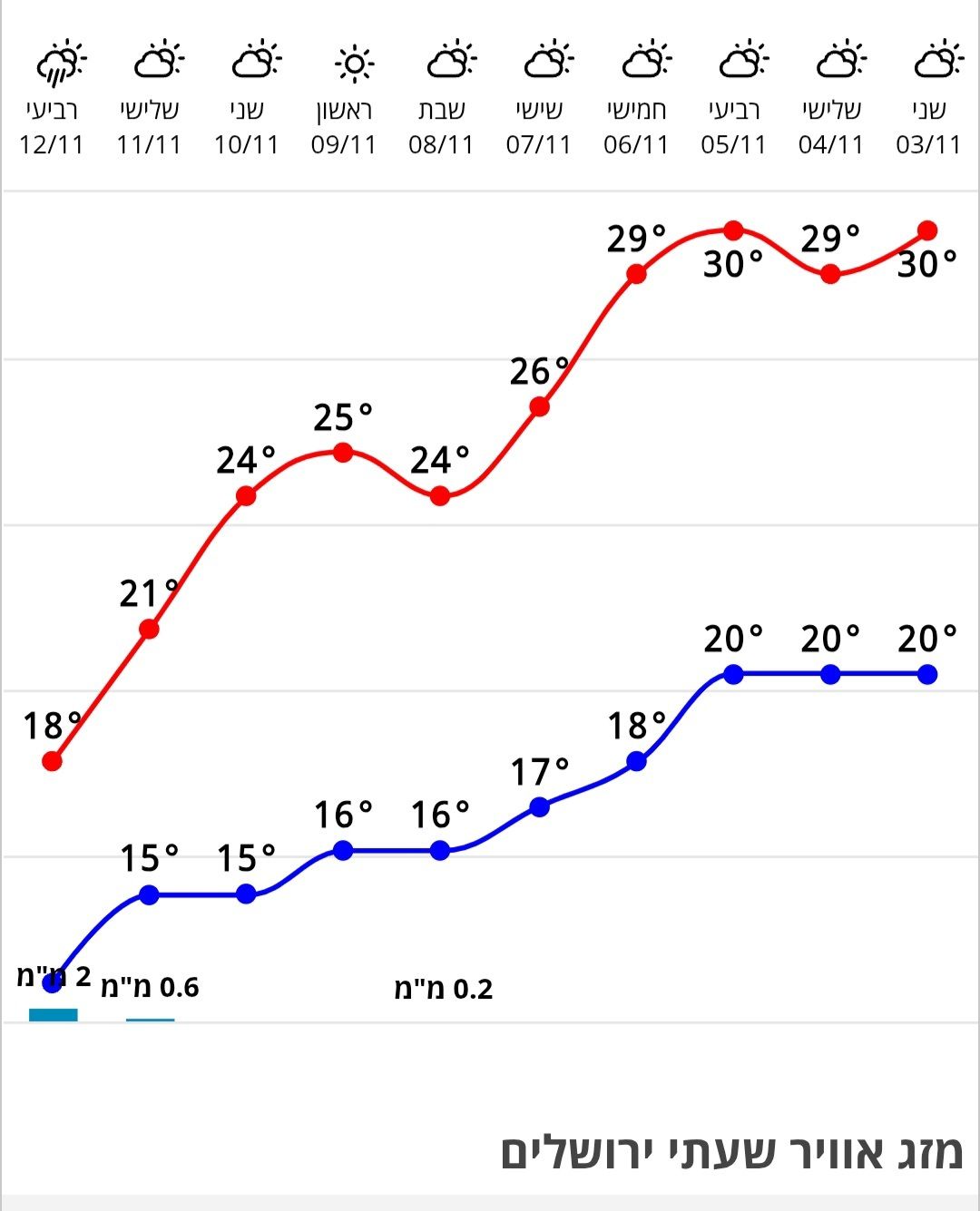 הממוצע בתחילת נובמבר בשנים האחרונות הוא בערך 17-18. החל מאמצע החודש בדרך כלל יורד משמעותית לעבר ה14-15