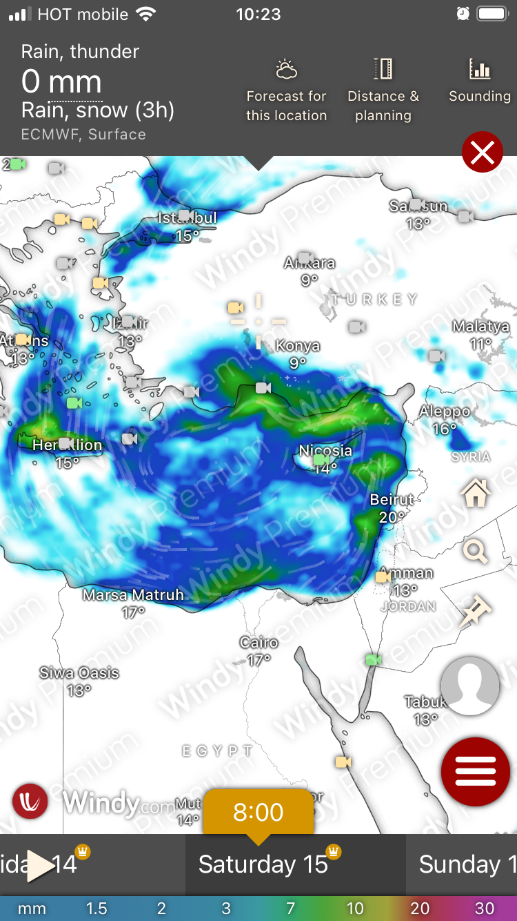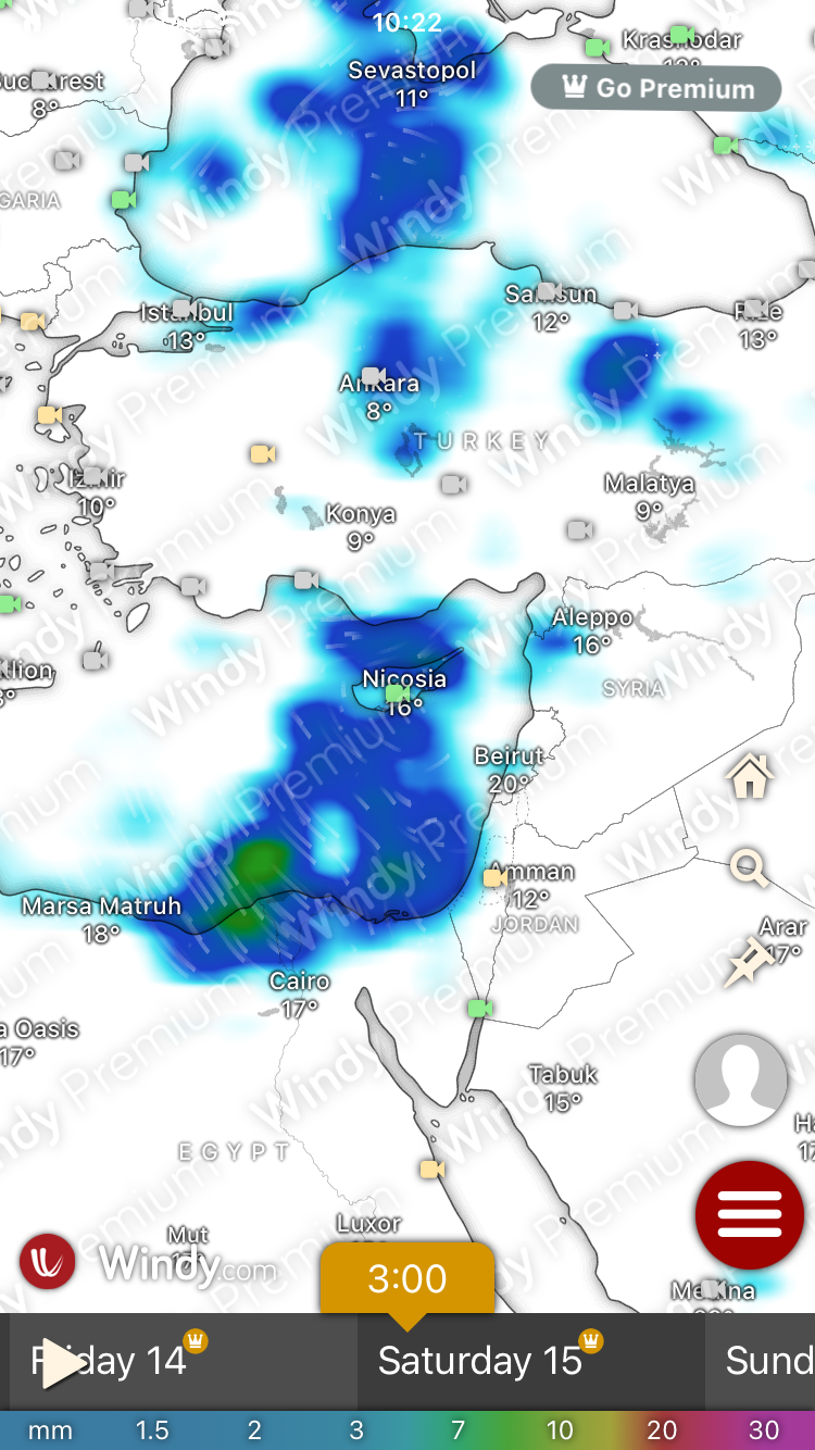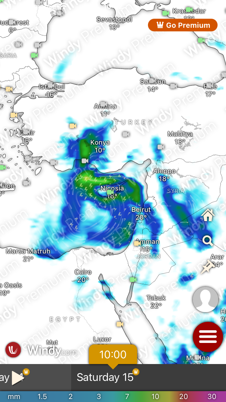 יש גם צורך לבחון את המדינות השכנות לנו. גשם שצפוי בדרום לבנון יכול להדרים אלינו. שים לב שכל לבנון יותר גשומה בעדכון צהריים מאשר בבוקר, וגם צפון סוריה, וגם טורקיה. הערכים בטורקיה ממש הכפילו את עצמם מ67 מ"מ ל143 מ"מ.
