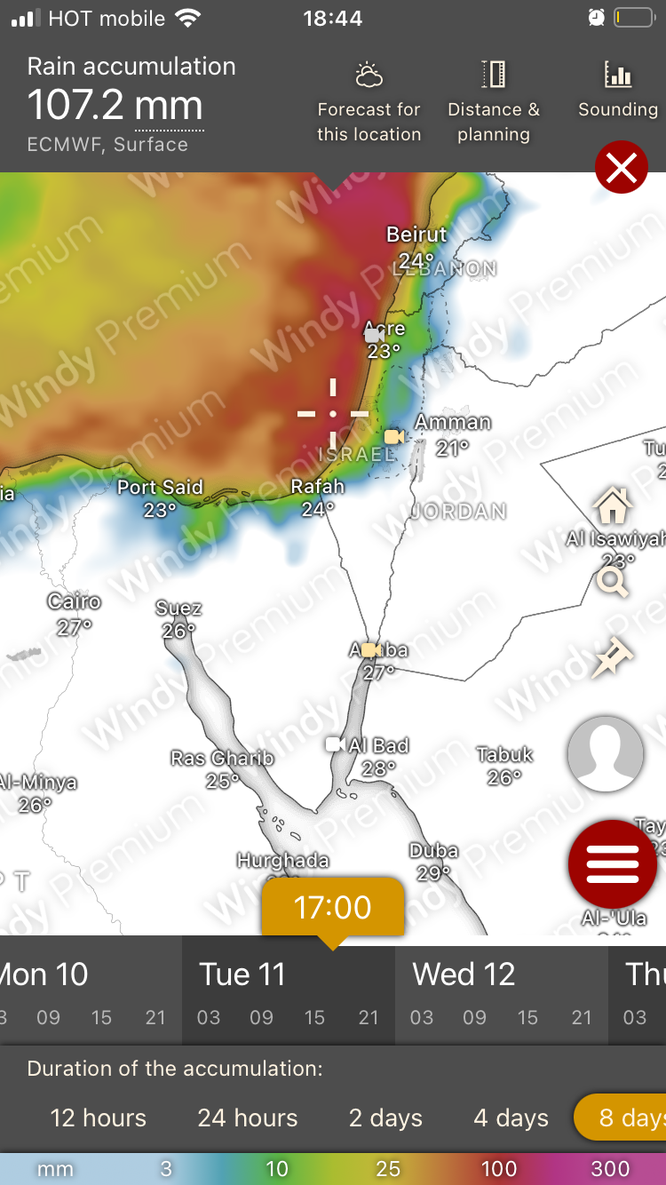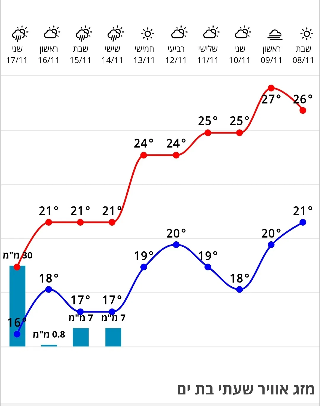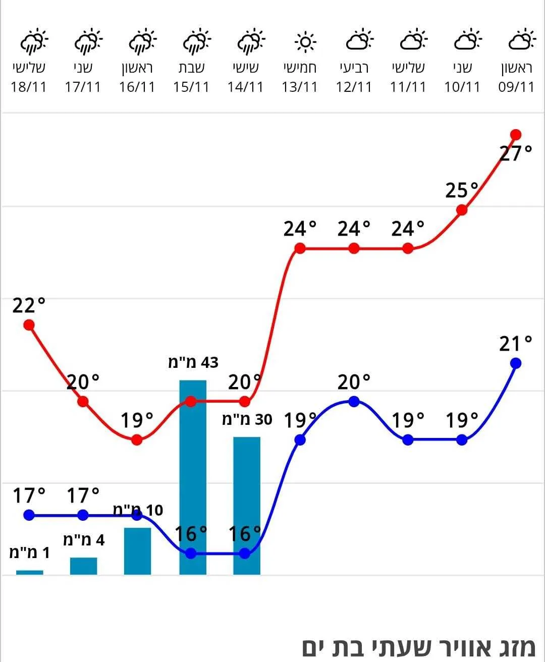 - תחזית האתר על פי איסי: 55 מ"מ בבת ים מתנאל