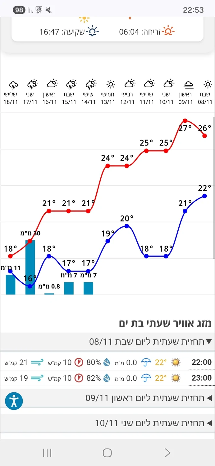 - לפני הגשם, מומלץ לעקוב אחר מזג האוויר מחר וביום שני Weather2day