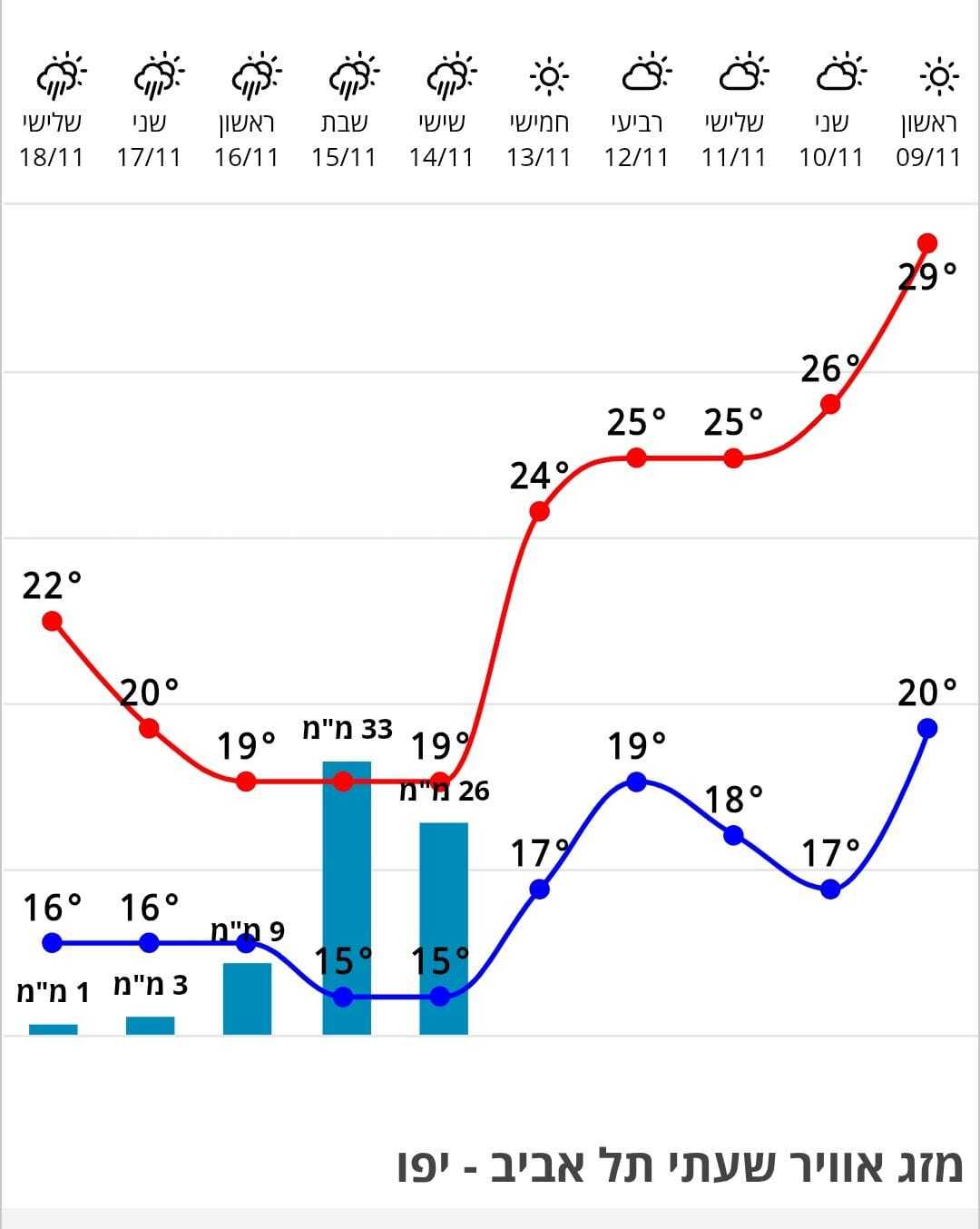 - לפי השמ"ט ביום שישי בירושלים ירידה של 10 מעלות מיום חמישי שלפניו, ו-15 מעלות מקס' בלבד! מתנאל