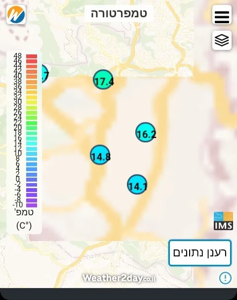 - 15-16 מעלות מקס' היום בירושלים. טמפ' של דצמבר. מתנאל