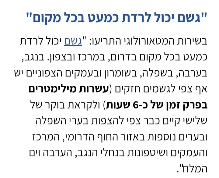 מחר בלילה ועד רביעי אחרי צהריים מלא גשם כבד ורעמים וברקים רחבים מקןןה שימשיך
