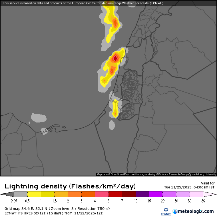 אירוע די קצר, אך עם יכולת לאירוע גשם משמעותי וסופות ברקים ורעמים