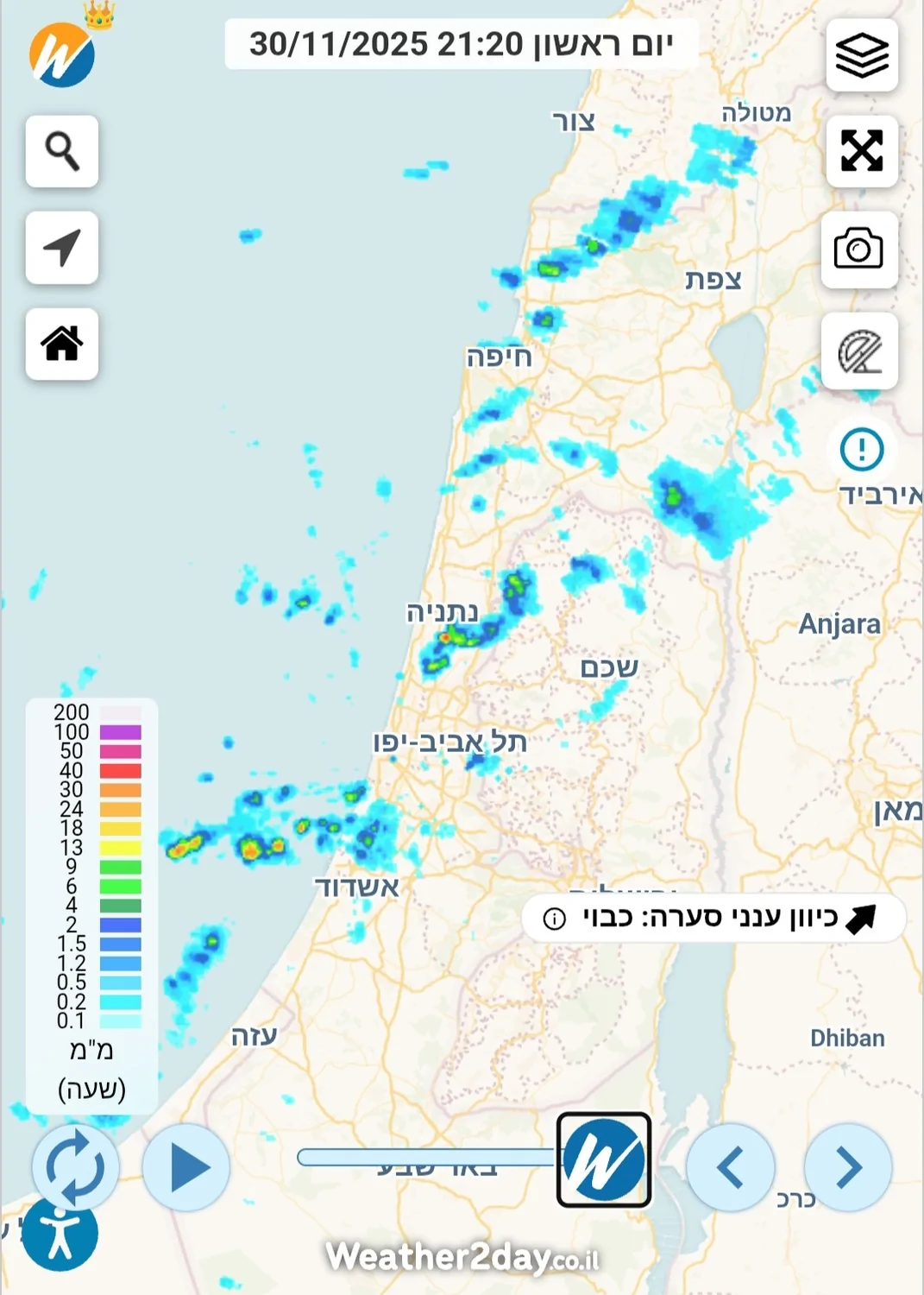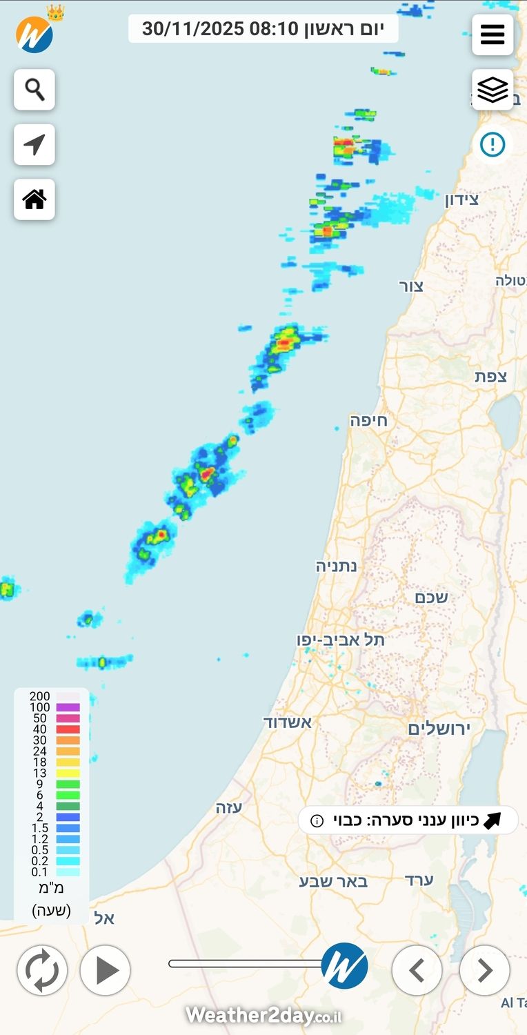 - דיווחי מזג אוויר - יום ראשון 30/11/2025 Weather2day