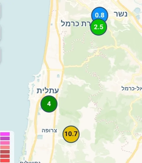 כרם מהרל - 10.7 ממ, דלית אל כרמל - 7.6 ממ