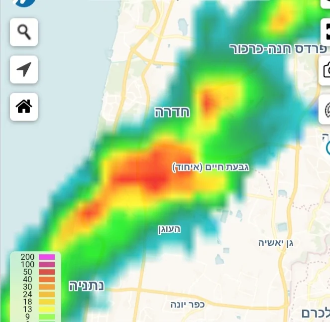 - כעת גשם שוטף בכפר שמריהו, ללא סופות רעמים. חובב מזג האוויר
