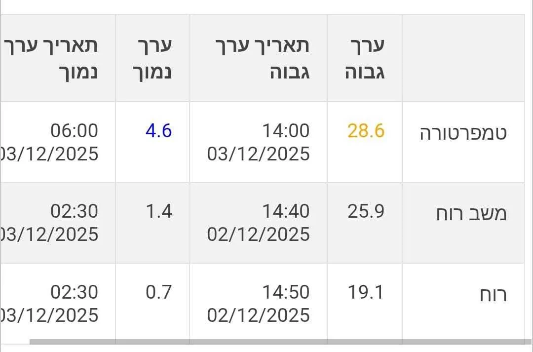- דיווחי מזג אוויר - יום רביעי 03/12/2025 מתנאל