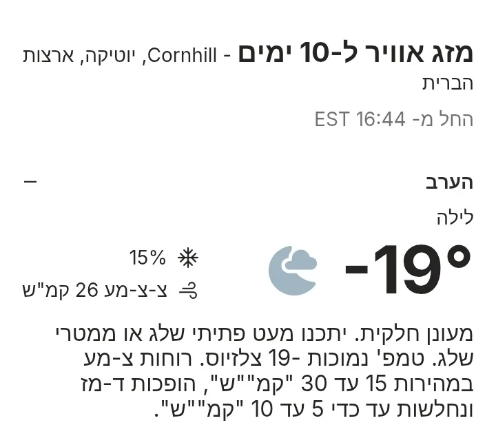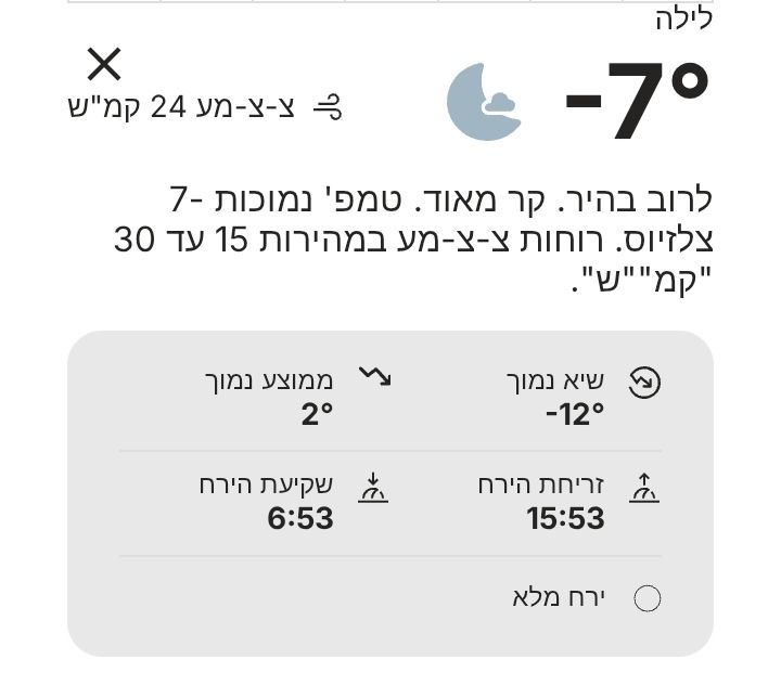 הטמפרטורות ירדו הלילה עד 7 מינוס, כשהממוצע לדצמבר הוא בין 8 ל 2 מעלות פלוס
