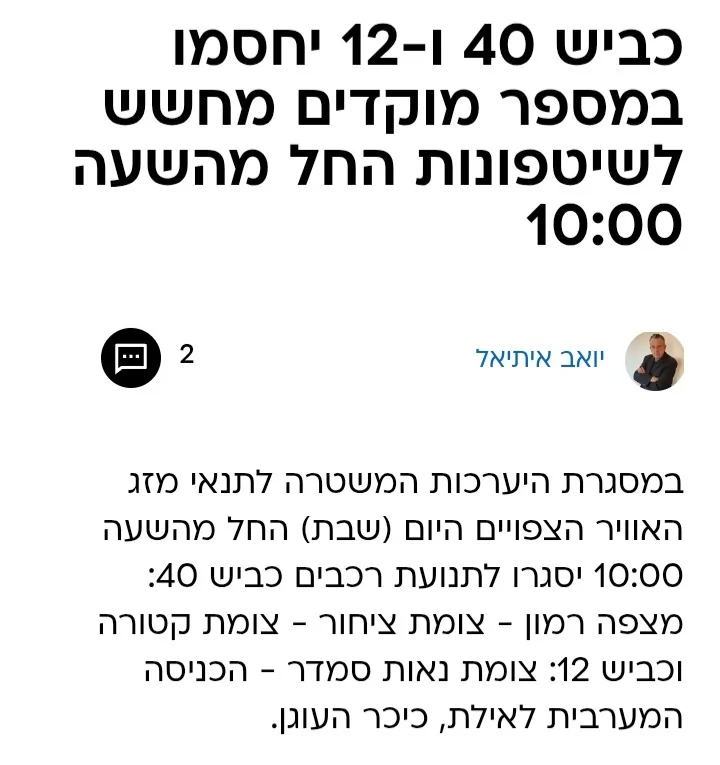 - סגירת כביש 40 משעה 10 ??? טלטל