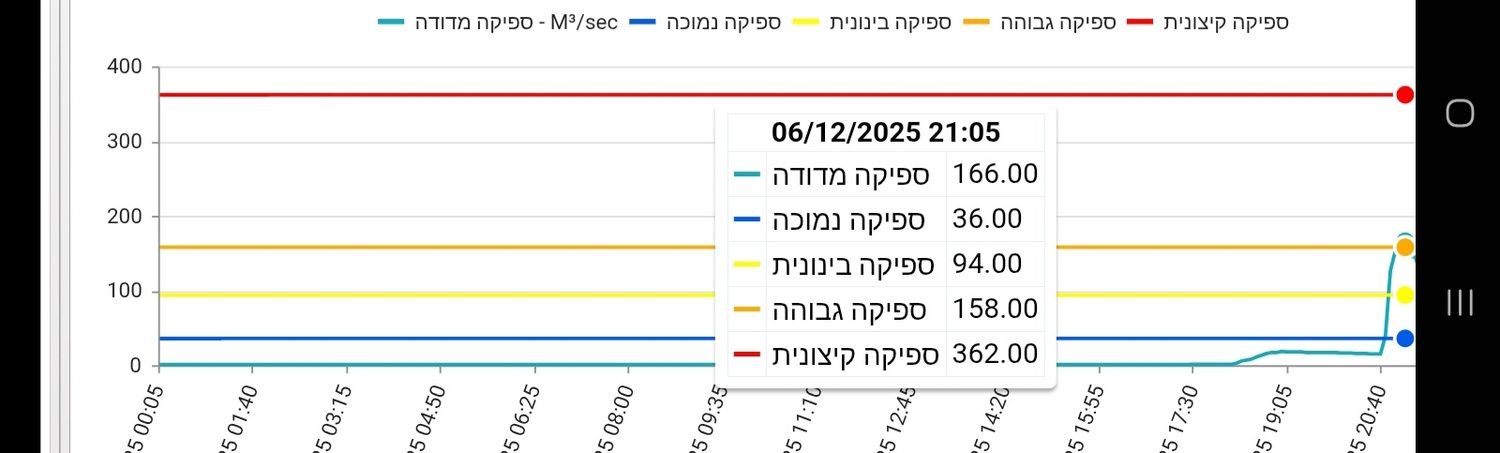 כפי שצפיתי הבוקר על סמך התחזית, נחל חיון הגיע ב-21:00 לכ-170 קוב/שניה על כביש 40 ליד שיטים, שזו כנראה אחת המדידות הגבוהות שלו מאז תחילת המדידות