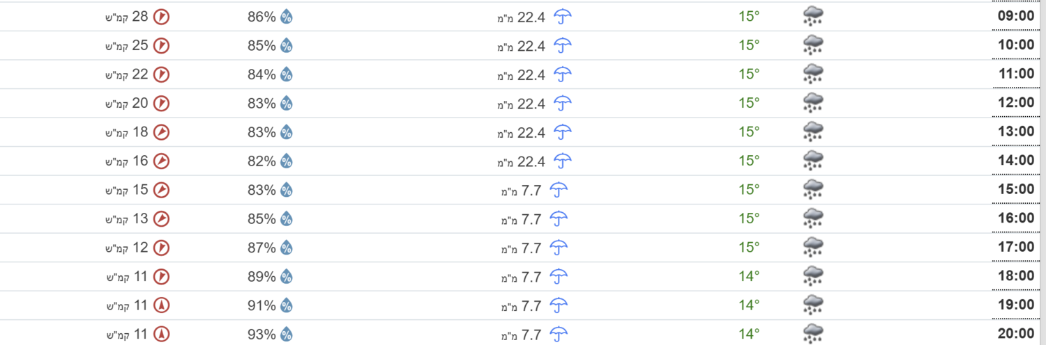 (הרי דוגמא: בירושלים הוא כותב באחד הימים גשם קל עם 73 מ"מ. האמנם זה גשם קל? הלוואי כל החורף..)