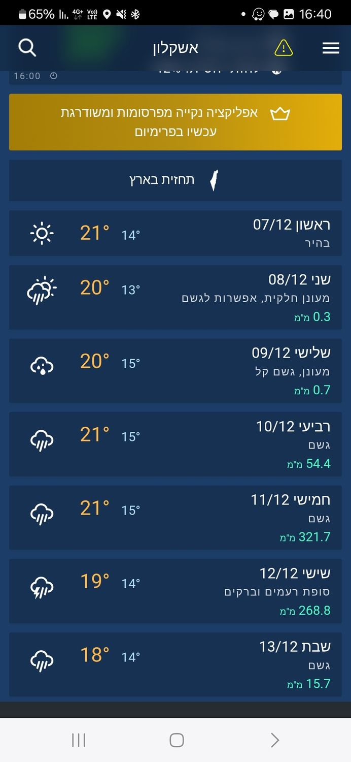 - לפי זה 661.6 מ"מ באשקלון ממחר עד שבת. מתנאל