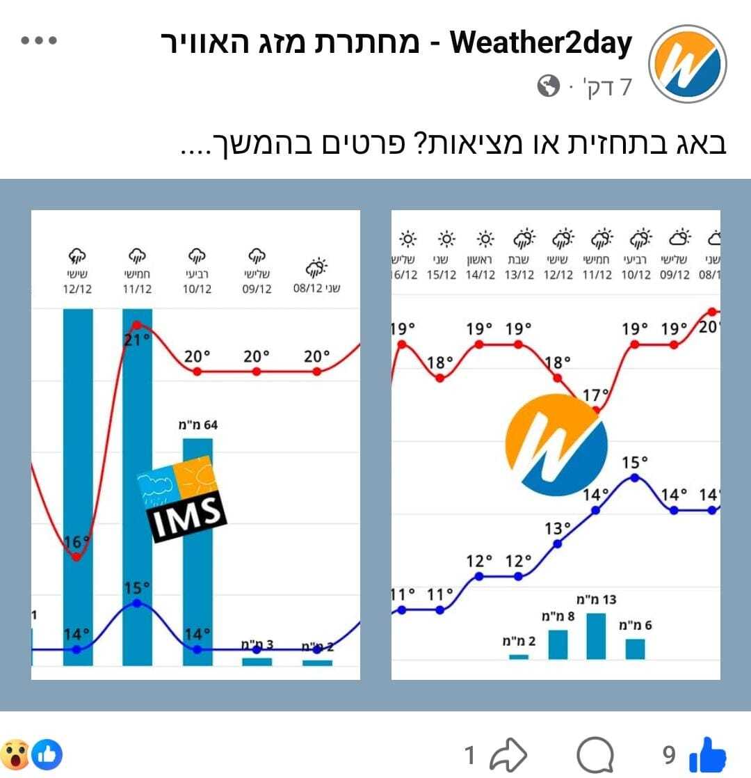 נראה שהאפשרות השנייה היא הסבירה יותר: קשה להניח שצפויים כאן יומיים רצופים שבהם תרד כמות גשם יומית כפולה מהשיא שנמדד אי־פעם מאז תחילת המדידות. בנוסף, אין שום מודל שתומך בכמויות הקיצוניות הללו.