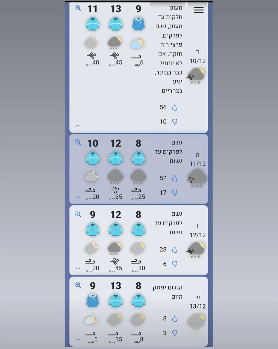 יומיים ברצף של "גשום לפרקים עד גשום" ועוד יומיים של גשם לפרקים.