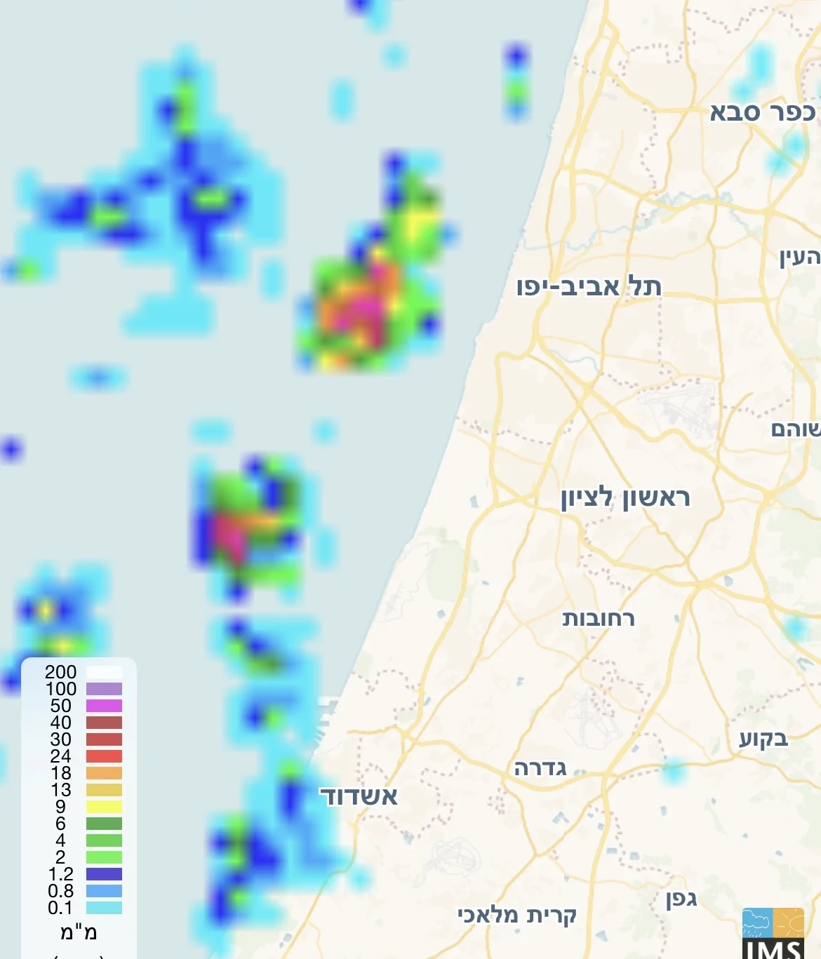 - מהרצליה צפונה גשם לכל אורך החוף. פז