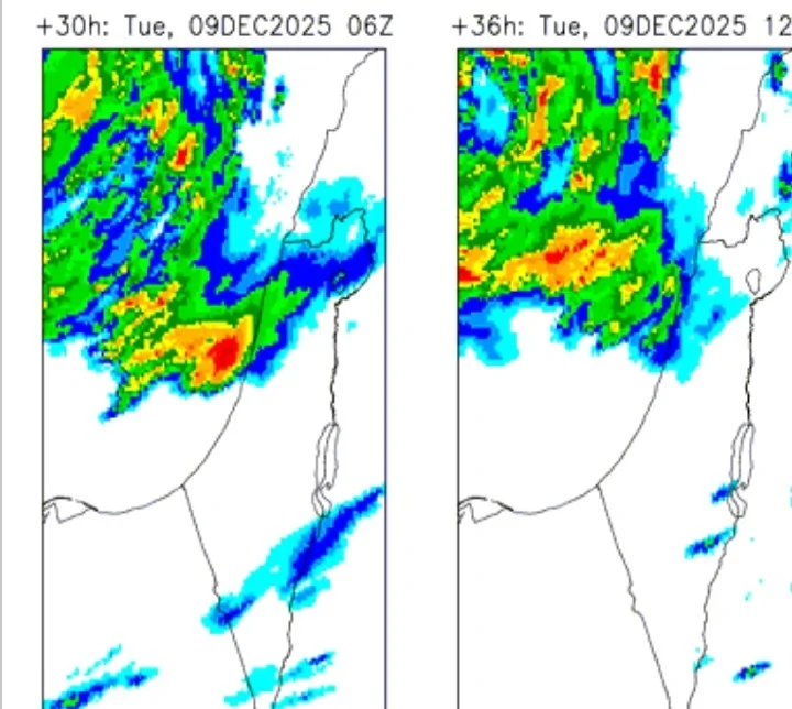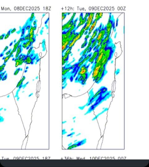 דיווחי מזג אוויר - יום שני 8/12/2025