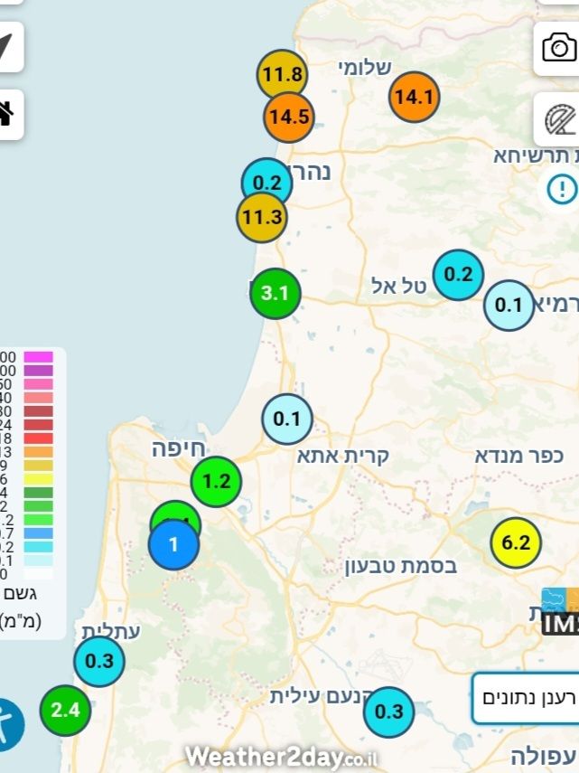 - גשם בציר עתלית-קריות-חיפה-עכו-נהריה-שלומי: מתנאל