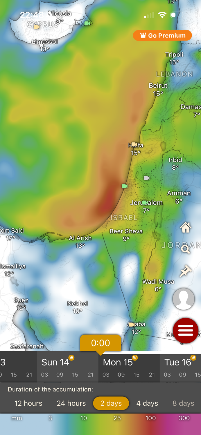 בתמונה הגשם המצתבר לימים שני ושלישי הבא