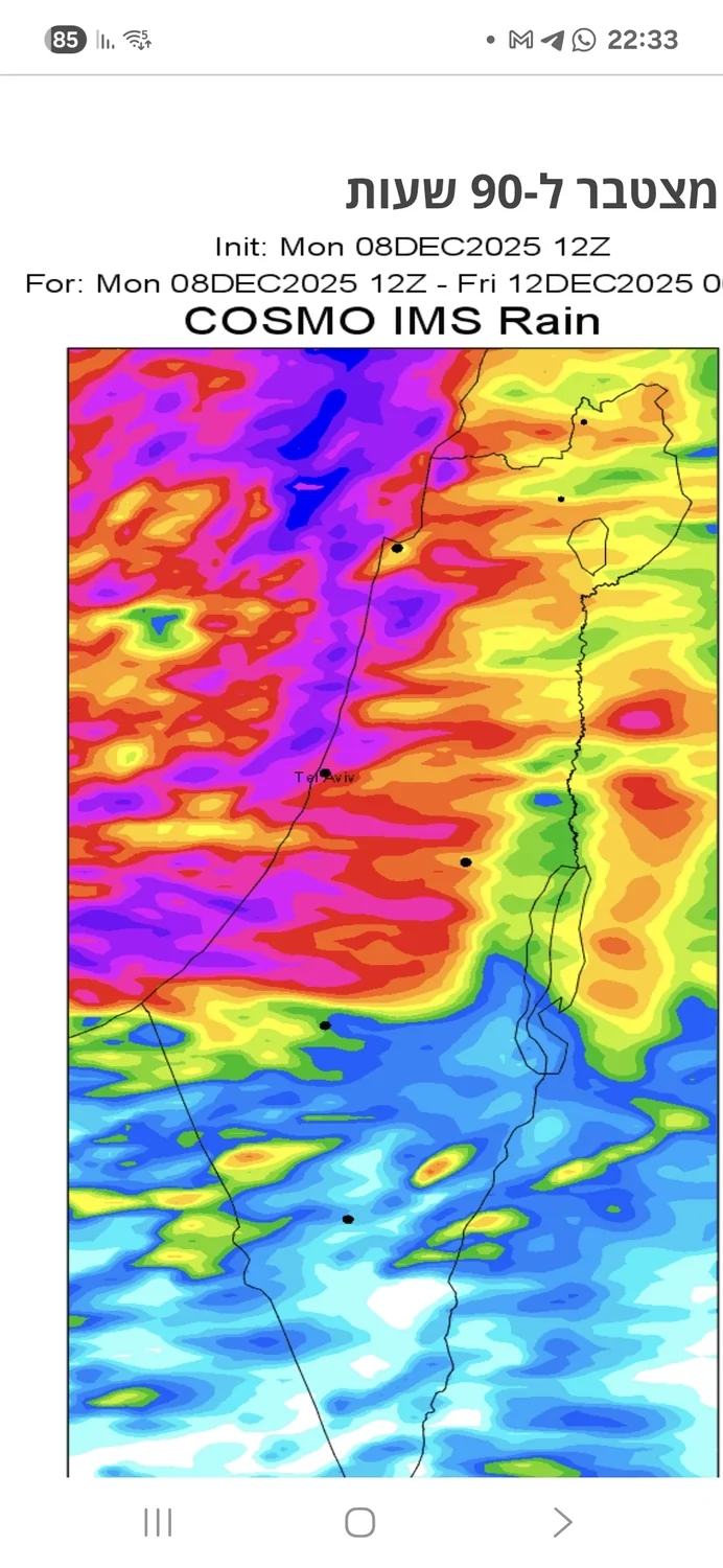 ראו את זה ברוב העדכונים... ולפי המפה הזאת של קוסמו באזור חיפה בכלל "סיימנו" כבר את חלקנו במערכת (ירדו בממוצע מרחבי כ- 15 מ"מ עד כה).