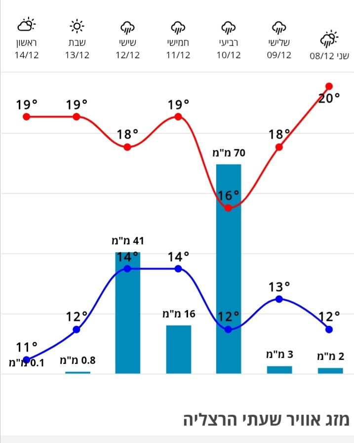 והייתי בונה על תחזית מתונה של 70-80 ממ.. אולי במקומות שיא יגיעו ל 100 ממ.. והמקומות היבשים יותר .. יגיעו רק ל 40 ממ (לא באזור הדרום)