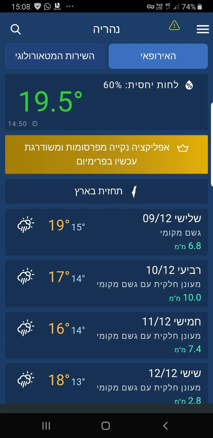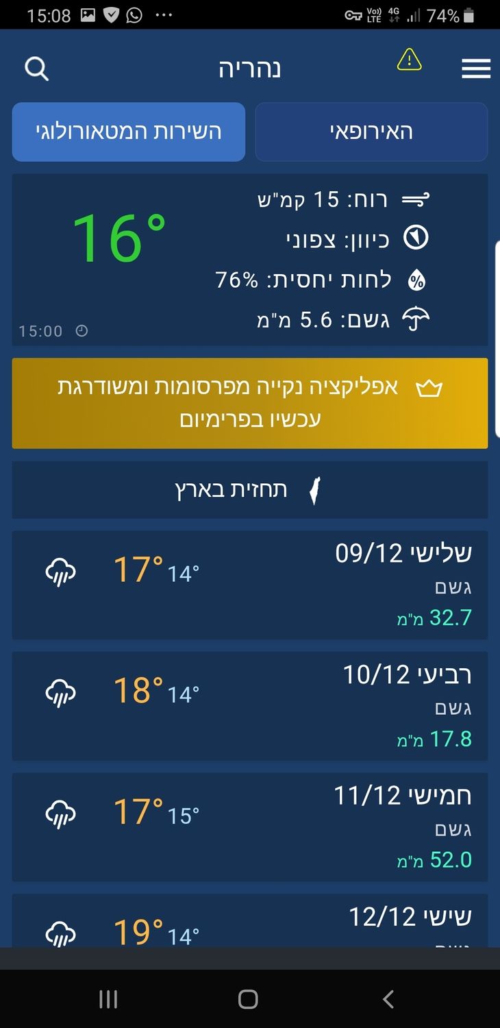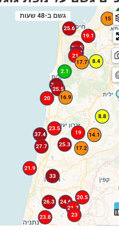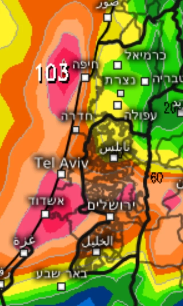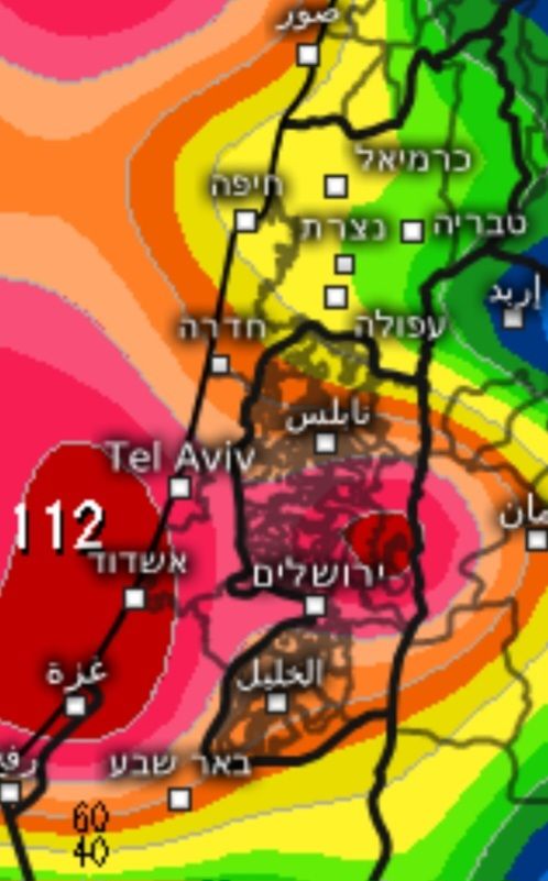 - תחזית השמ"ט באתר עם 112 מ"מ בתל אביב ברביעי-חמישי מתנאל