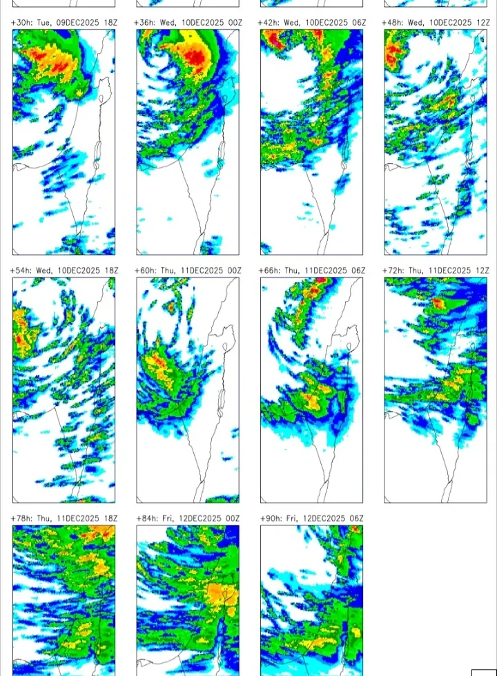 דיווחי מזג אוויר - יום שלישי 09/12/2025
