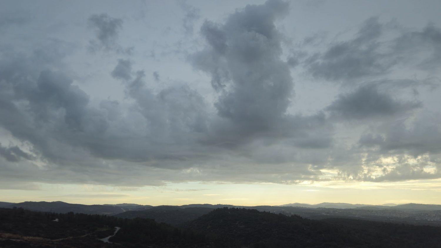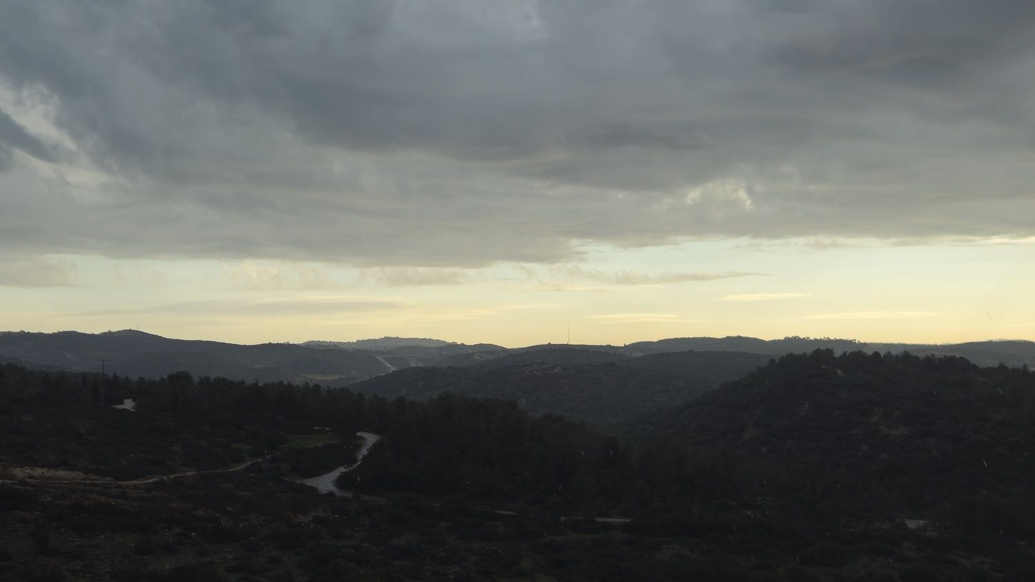 למרות שכאן יורדים גשמים לסירוגין מאז אתמול, בפנים הארץ המצב שונה לחלוטין. אף אפשר לראות זאת בתמונות שצולמו בדקות האחרונות שבאופק המזרחי בהיר (ניתן לראות גם במכ"ם שקצת מזרחה מאיתנו אין גשם בינתיים).