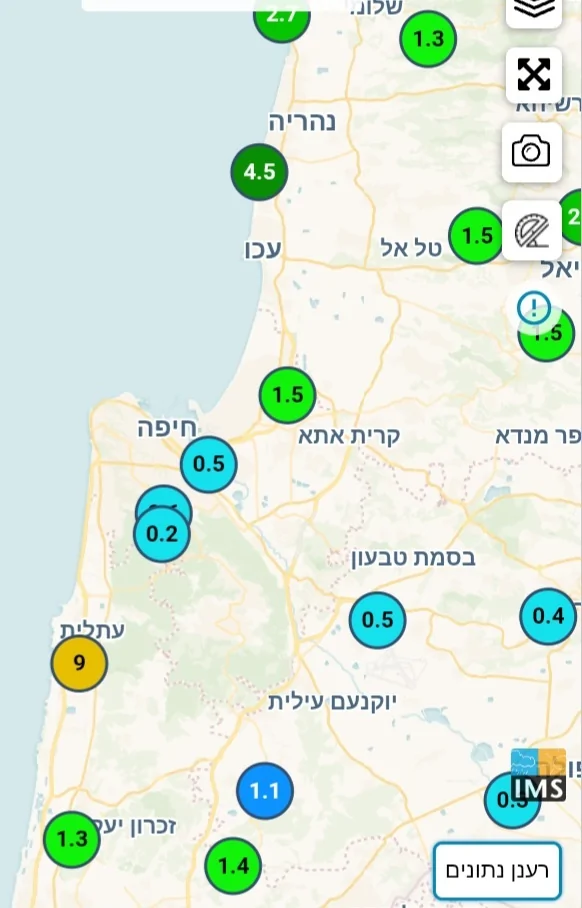 - 12 מ"מ בשעה האחרונה בעתלית רוני