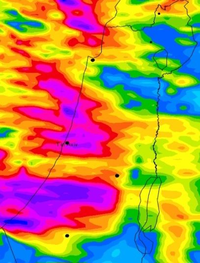 צהריים ולקראת ערב מוגדר כשיא המערכת .. דווקא יהיה במרכז ולא בצפון עם כמויות פסיכיות של עד 150 ממ. כך גם נראה אזורי הצבע התראה אדום שסימן שמ"ט )מצב כאן(... המפסידים הגדולים כרגע דווקא הם הצפוניים במסרח כגול ישובי הכינרת וצפונה