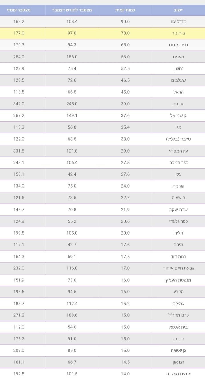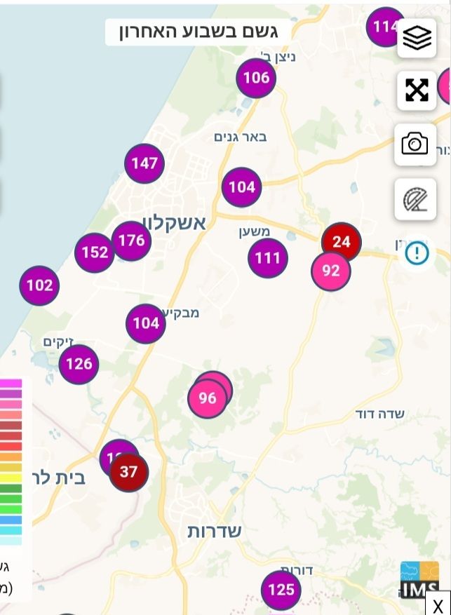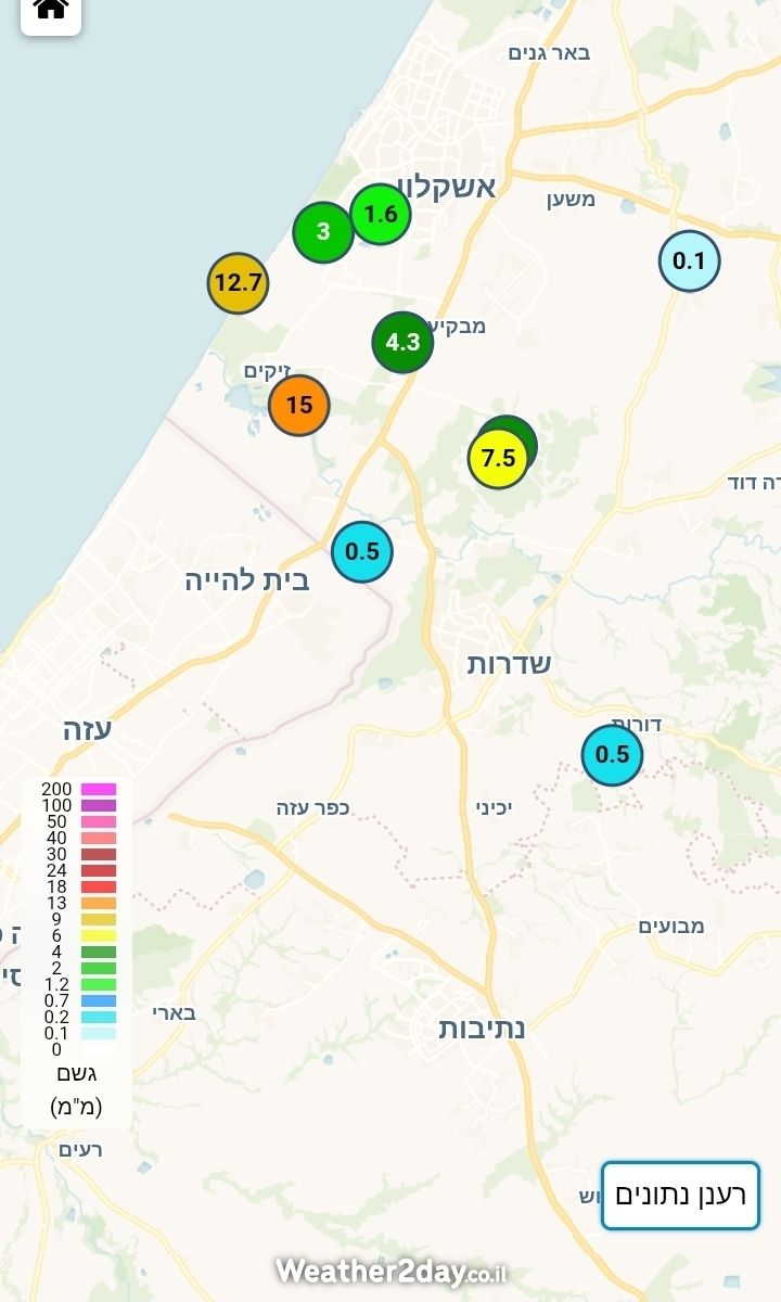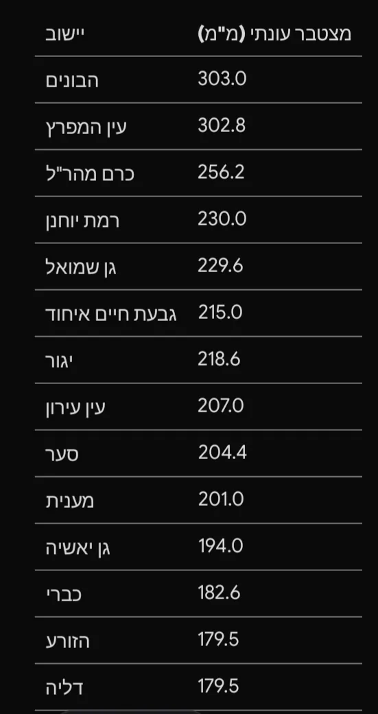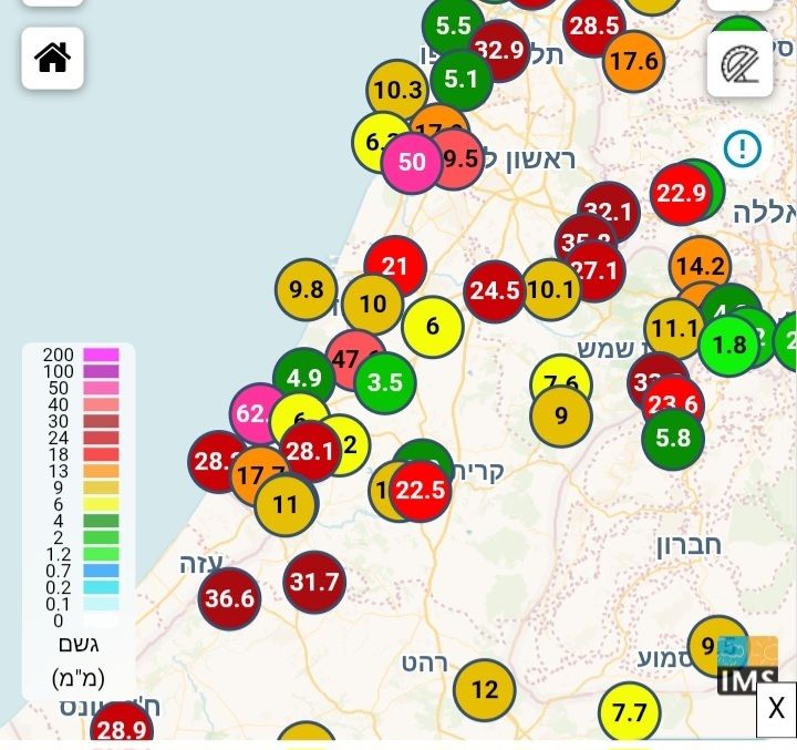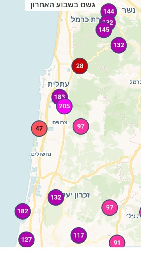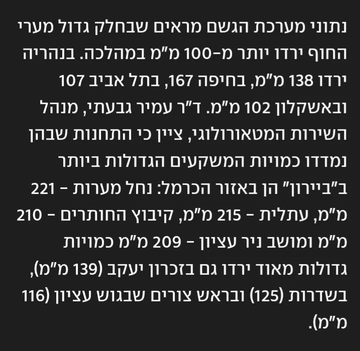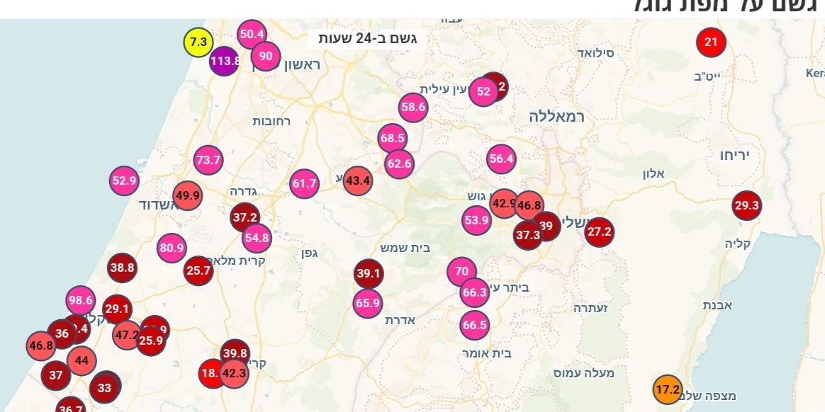 - הרצליה צפון ליממה 21.1 מ"מ. למערכת כולה 72.8 מ"מ יובל