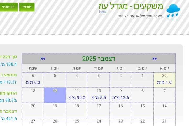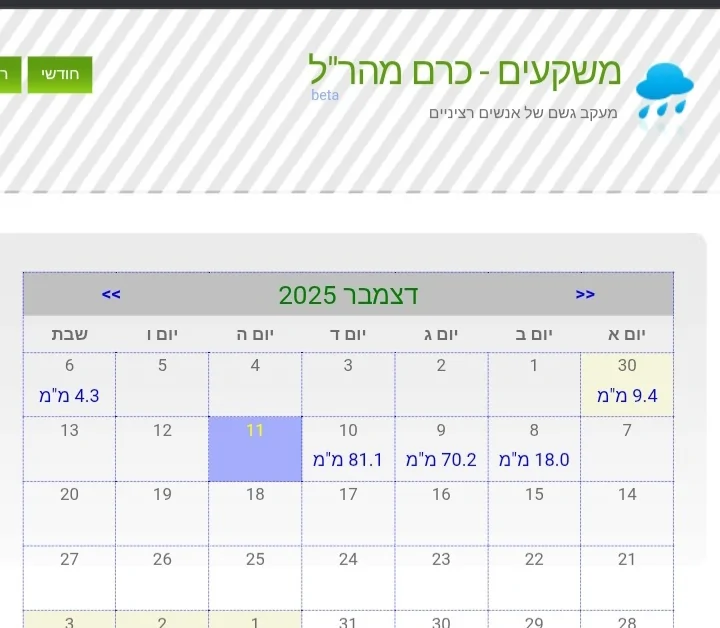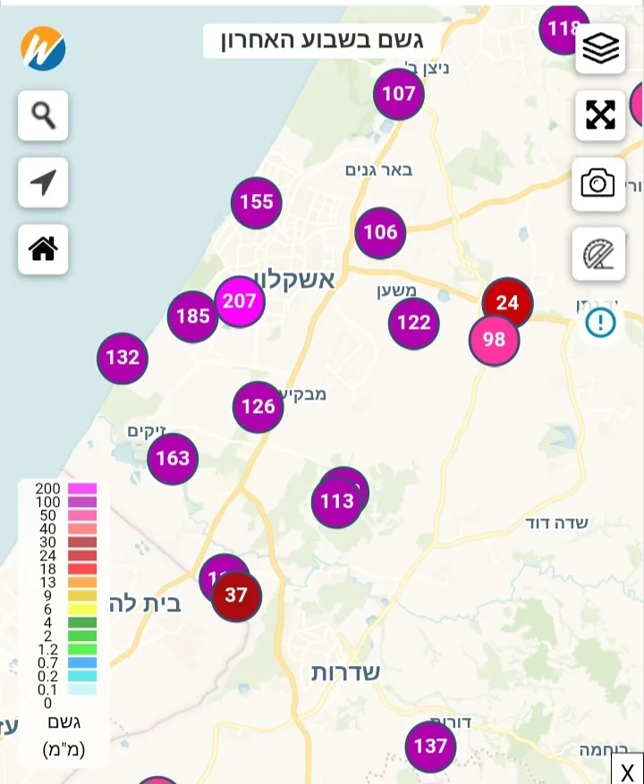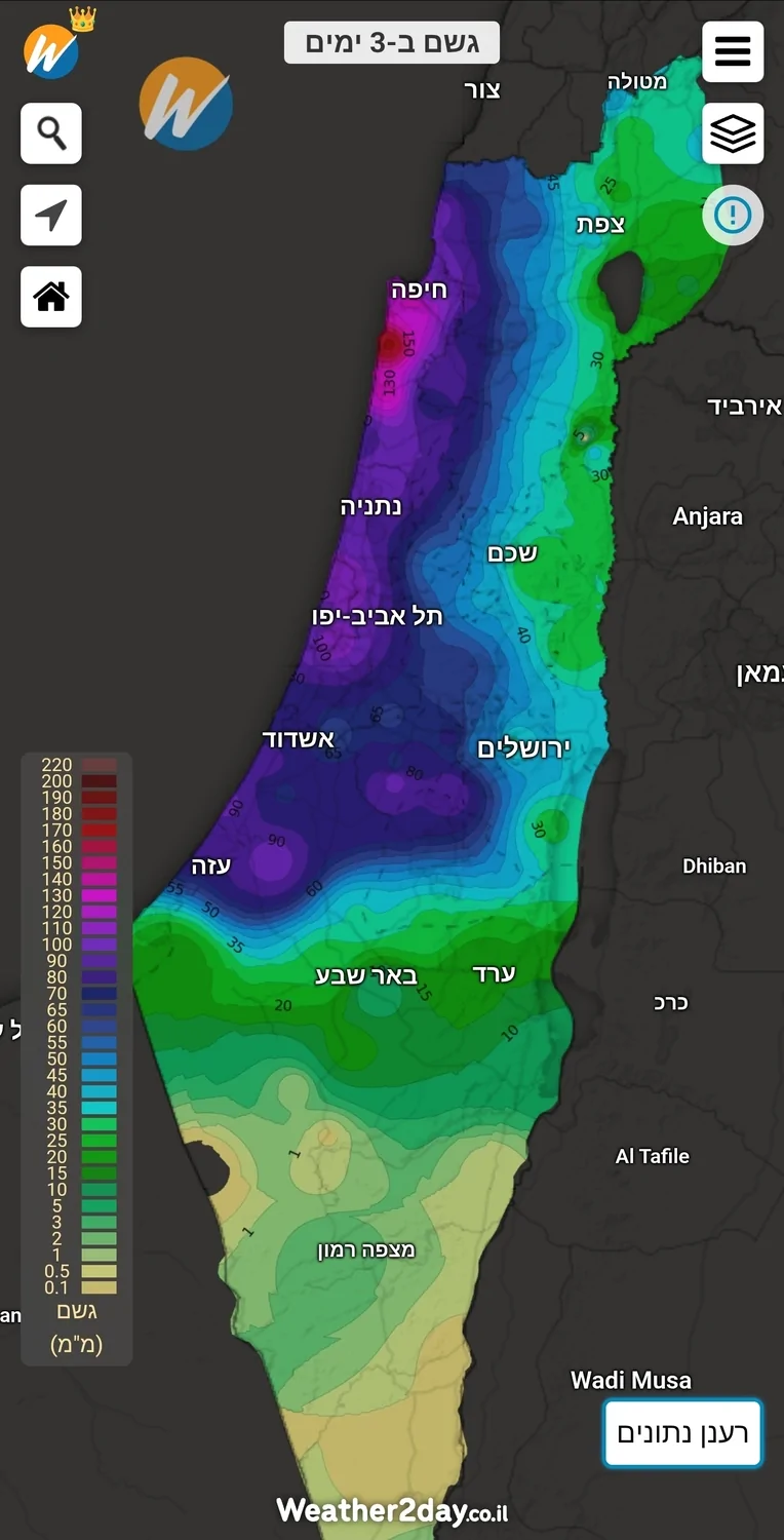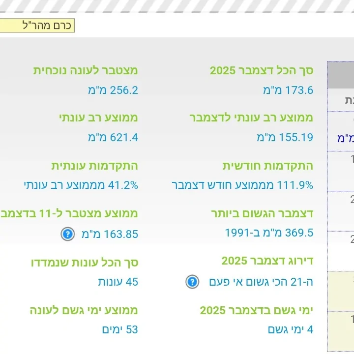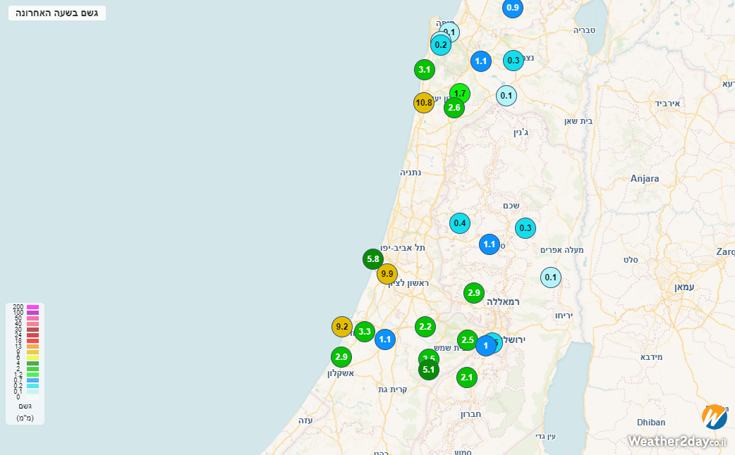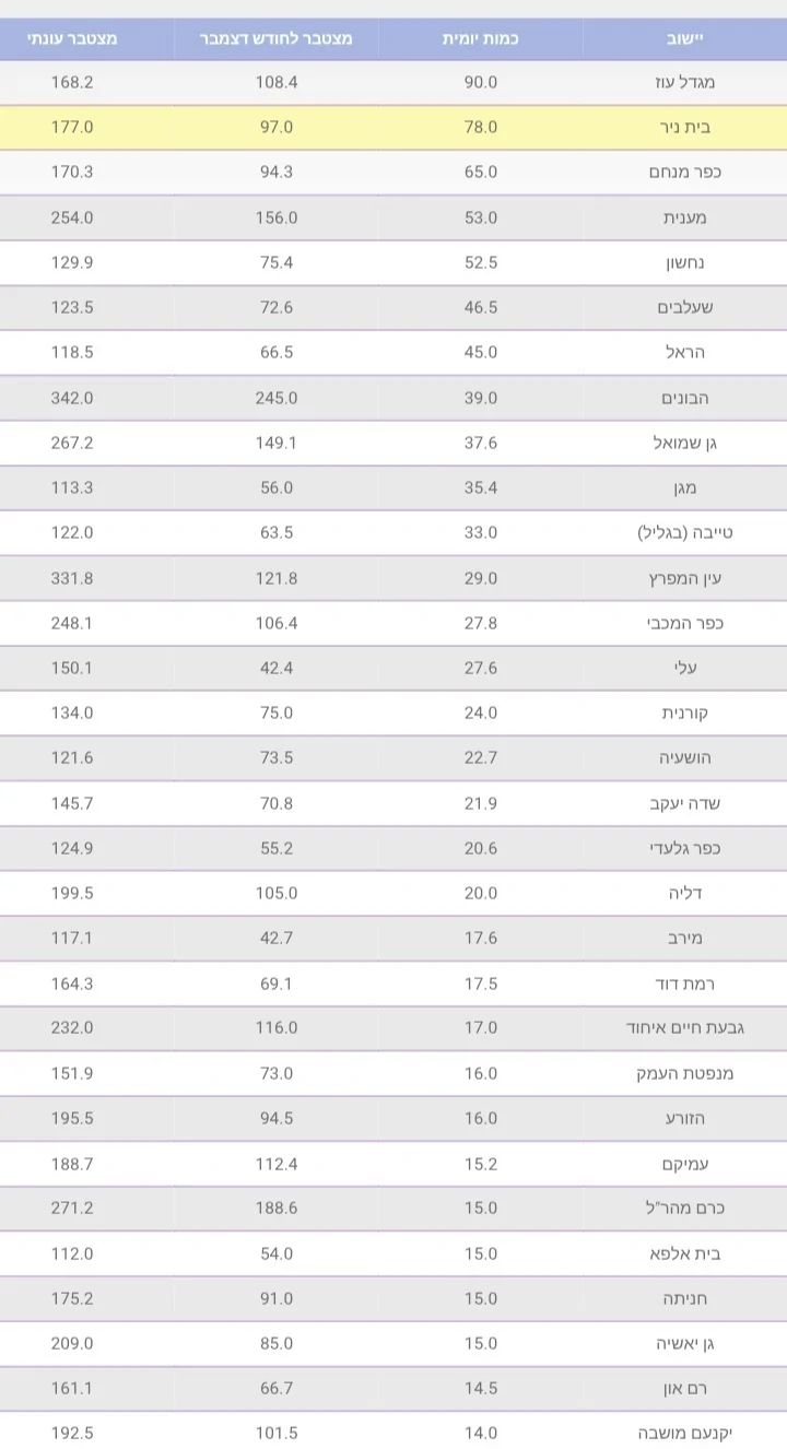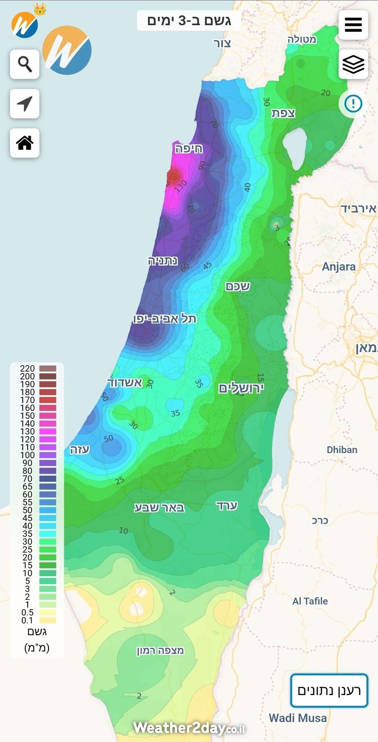 - הרצליה צפון ליממה 21.1 מ"מ. למערכת כולה 72.8 מ"מ יובל
