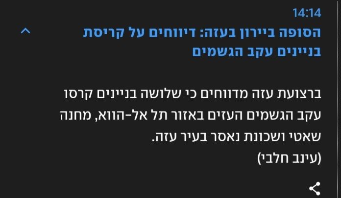 - עזה מקבלת כמויות גשם מטורפות . דביר