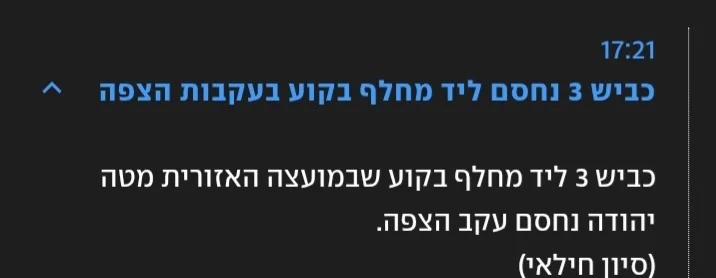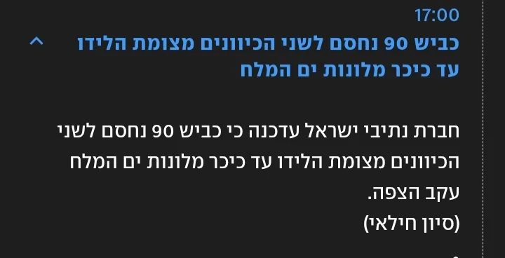 - אכן, כביש 293 ניסגר ב 19 בערב באזור קלחים המוביל הבטוח