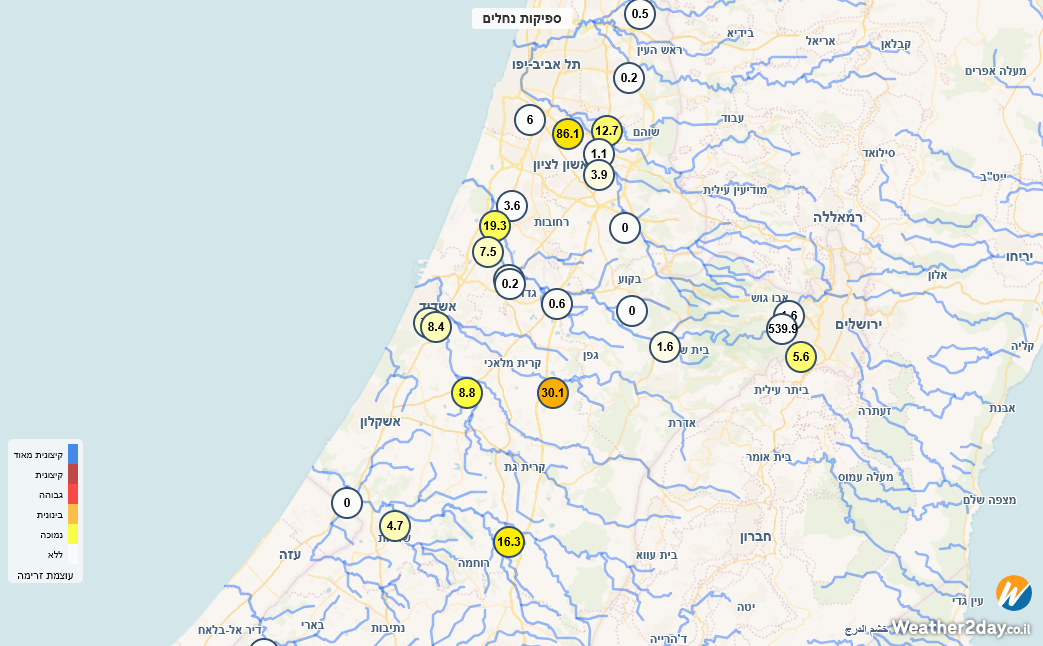 - קריית גת וכפר הריף עוצמת גשם 60 מ"מ בשעה מהשומרון