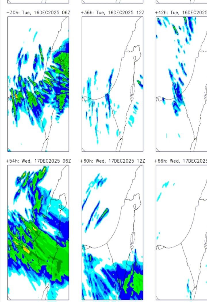 יום שלישי לפנות בוקר ויום רביעי לפנות בוקר יהיה כנראה גשם אבל לא במהלך היום, כך שהחשש העיקרי הוא סלעים חלקים